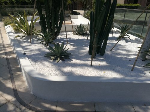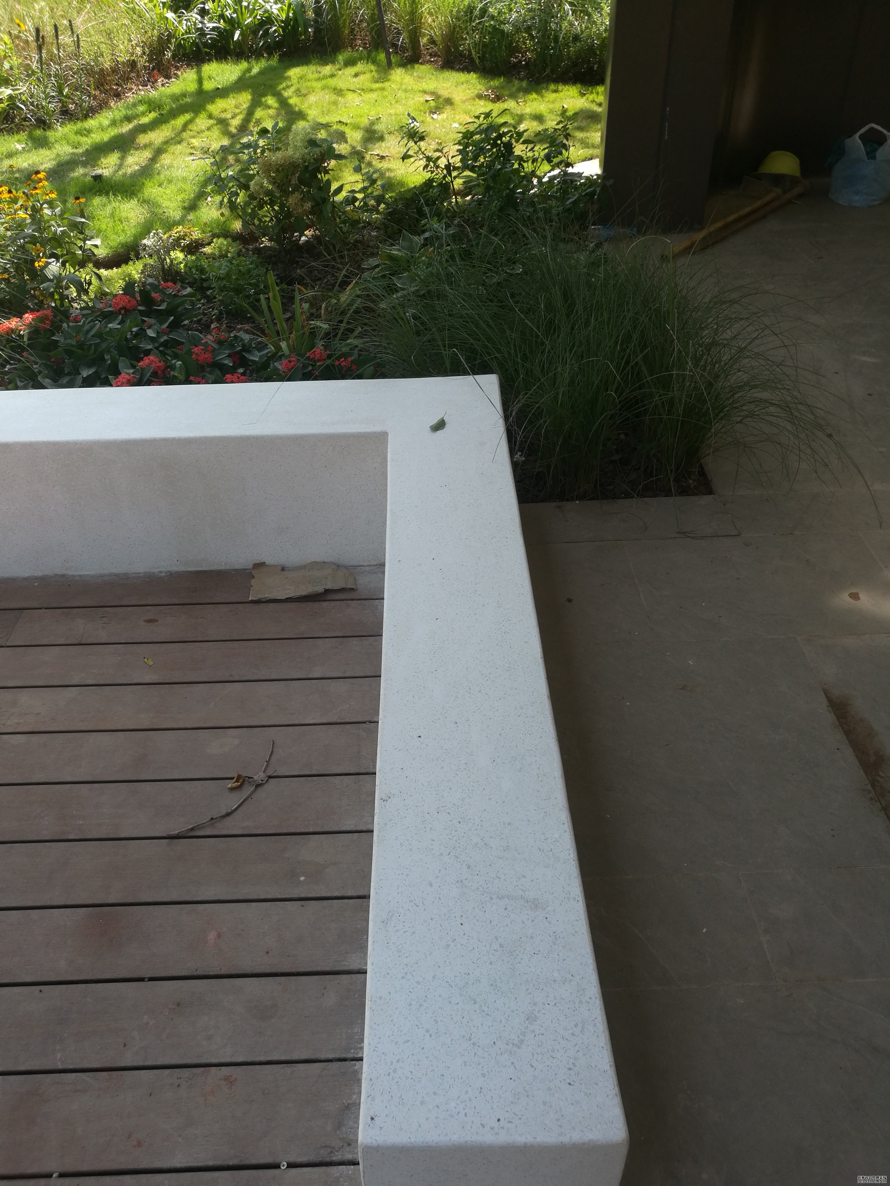 此項(xiàng)目位于重慶渝北區(qū)星江大道重慶龍湖舜山府小區(qū)里,水磨石設(shè)計(jì)主題為白色為主,主材采用白色水泥+無(wú)雜質(zhì)的白色骨料。