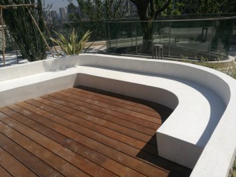 設(shè)計(jì)師對(duì)水磨石材料精心選擇,讓水磨石后期的呈現(xiàn)讓人眼前一亮。整體無(wú)縫的水磨石坐凳、花池,搭配著旁邊的植物,仿佛讓它也有了生機(jī)。