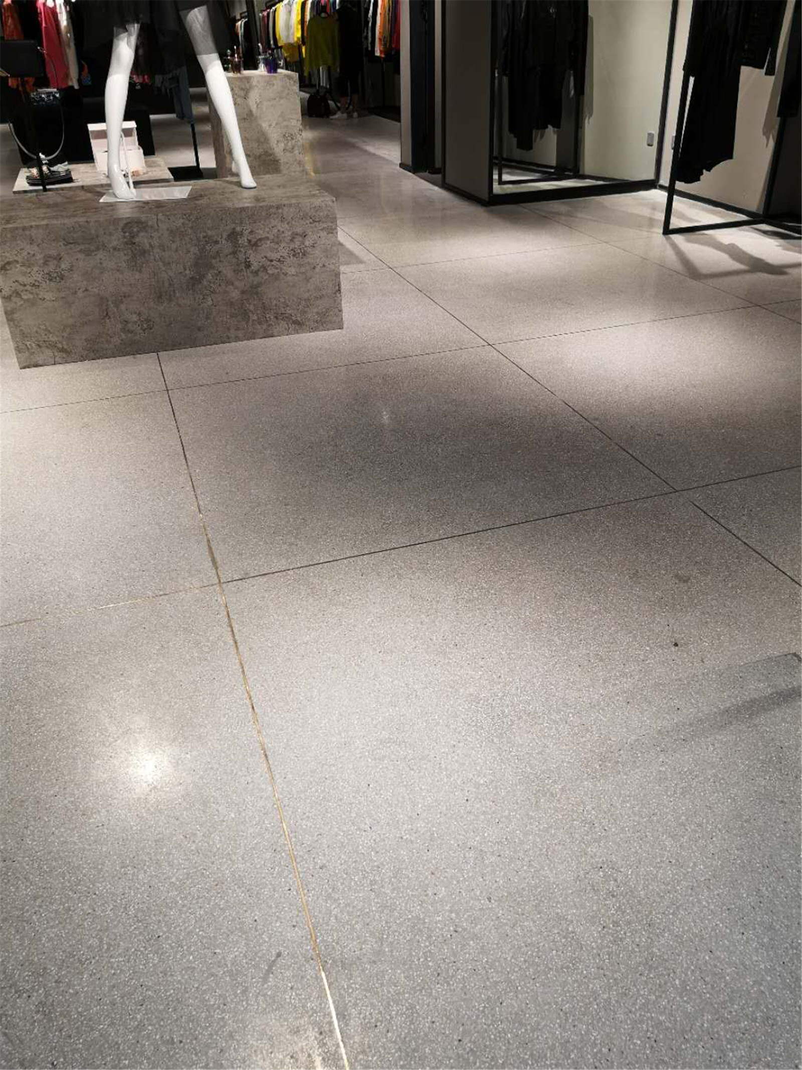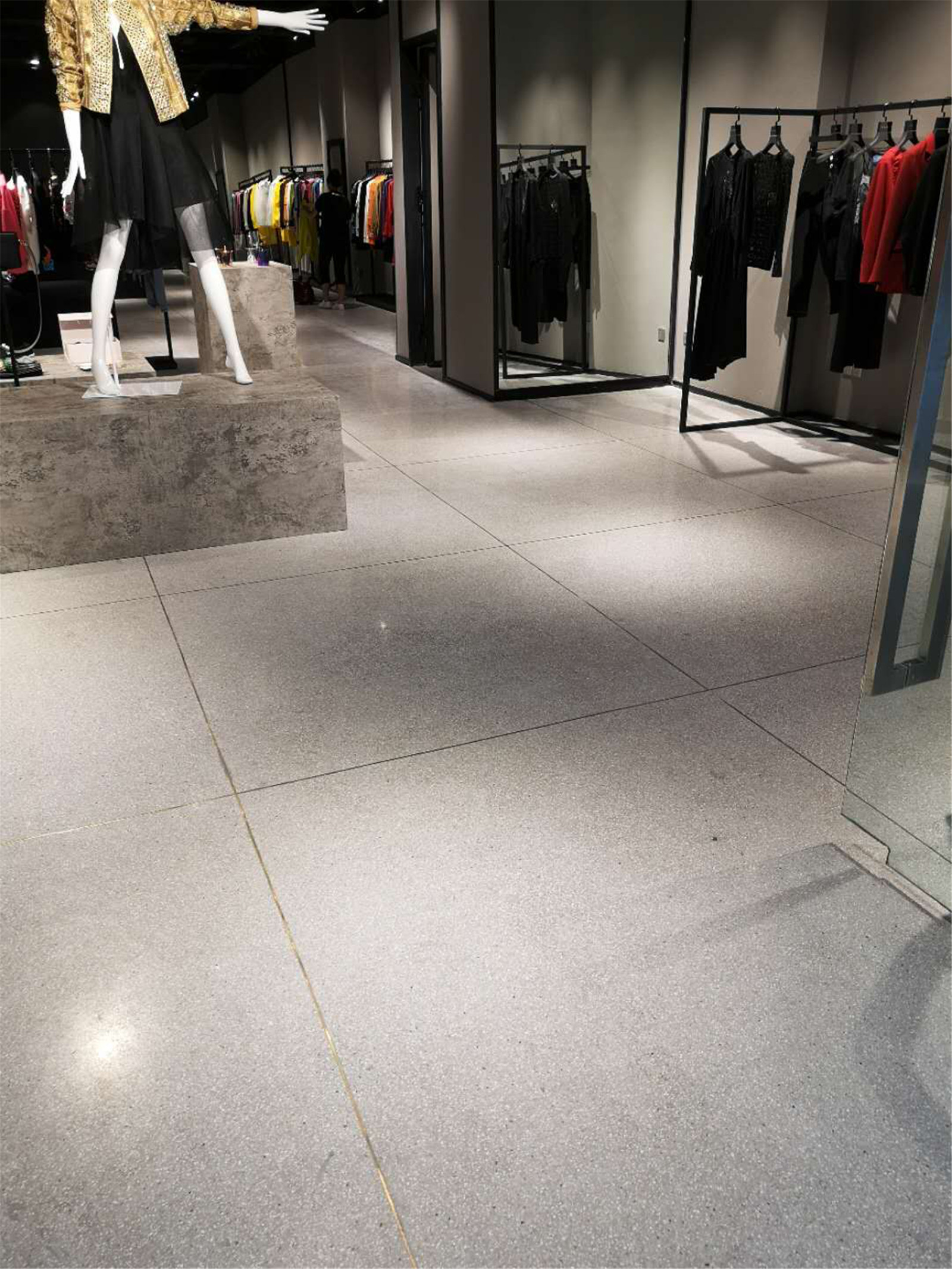 店內經過水磨石的鋪裝后整體感覺瞬間上了一個檔次,表感堅硬而光亮,同時防滑。給人感覺既美觀又實用。