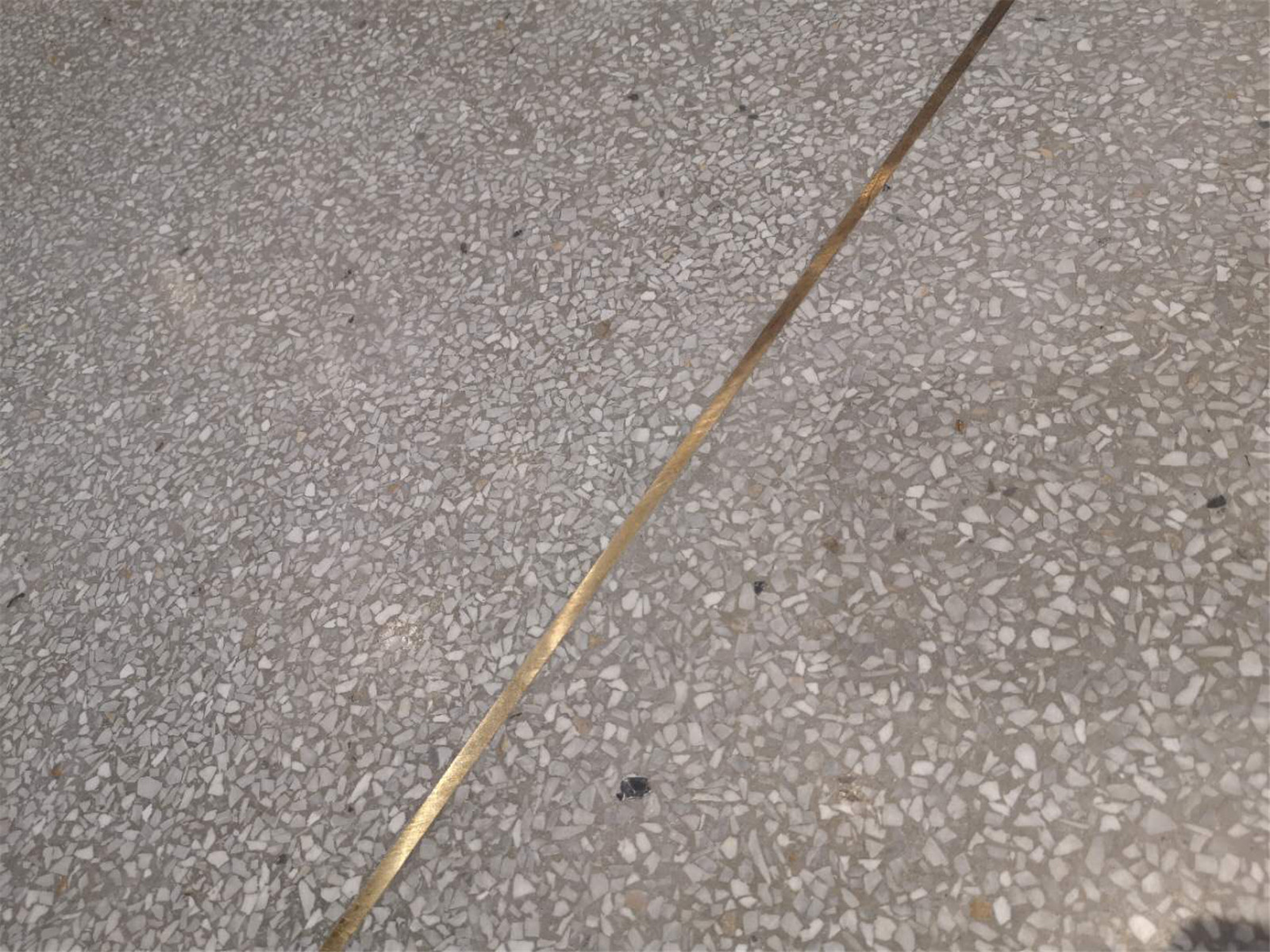 這次我們做的這個工地位于重慶國際都會新光里。為了和店內的整體風格進行搭配,地面業主選擇了灰色打底加白色石米,內嵌銅條的水磨石地面。