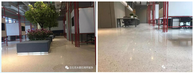 百石亮水磨石施工團(tuán)隊(duì)為大融匯時(shí)裝學(xué)院打造的水磨石地面工程。