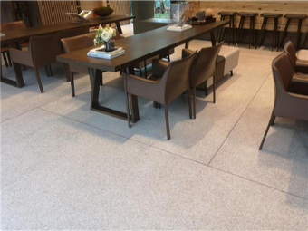 從樣品的選擇到攤鋪,灰水泥+白色石子的簡(jiǎn)單搭配。我們的工人本著質(zhì)量?jī)?yōu)先的工匠精神,立志建造出質(zhì)量為導(dǎo)向的新型水磨石地板,無(wú)論是大堂、側(cè)座還是通道,水磨石地板均是能經(jīng)得起時(shí)間檢驗(yàn)的,外表樸質(zhì),可是與周?chē)h(huán)境一搭配,不得不叫人拍手叫絕。