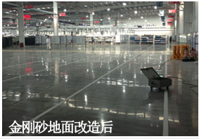 1、 將粗糙的金剛砂地坪用打磨機去除表面殘留油污印記,對于破損處配合地坪修補劑進行局部修補,然后清洗干凈地面。