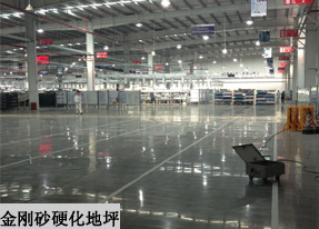 硬化型金剛砂地坪稱之為金剛砂硬化地坪或者混凝土硬化地坪,是采用源自德國進口技術研發的新地坪水料,通過打磨機壓滲封堵混凝土毛孔,形成高強高硬聚晶硅化層,阻隔空氣中的氧化物對混凝土的侵蝕,抑制混凝土中的鈣鎂離子析出并穩定混凝土的內部分子結構,達到混凝土內部密實改性的目的,從根本上確保地坪永不再起塵起砂。