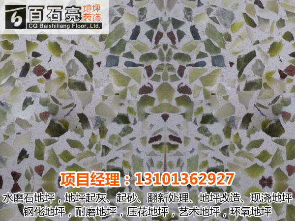 彩色水磨石地坪 產品性能:抗重壓、耐磨性強、不起塵、增強地面防油性,抗滲透,便與清潔衛生, 越使越亮