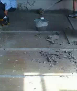 (2) 除渣,清理干凈樓板表面渣滓!用水沖洗!下為除渣機,開動時響聲震天啊!有的地方叫打毛。