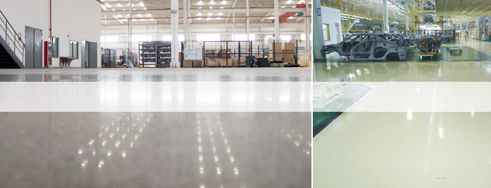 工廠廠地坪的要求:無塵、抗重壓、超耐磨、抗沖擊、防油污。